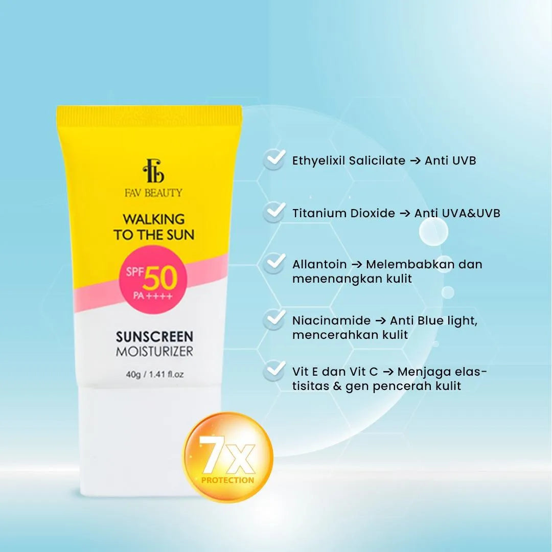 FAV BEAUTY Sunscreen SPF 50 PA++++ 7x UV Protection Sunscreen Moisturizer Brightening | Walking to the Sun Sunscreen BPOM